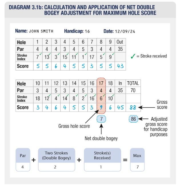 Example: WHS Handicap score = net double bogey + Score Handicap you receive